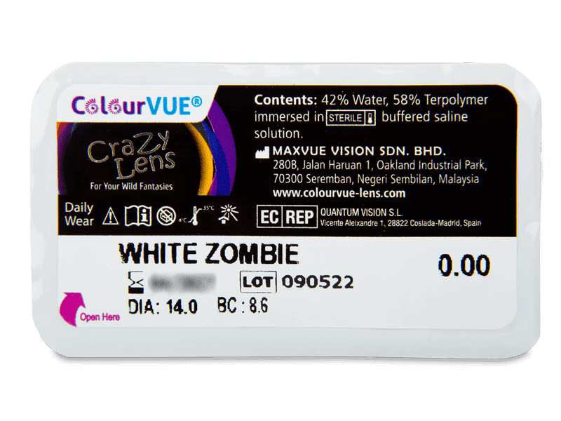 Properties - White Zombie contact lenses - ColourVue Crazy (2 daily coloured lenses)